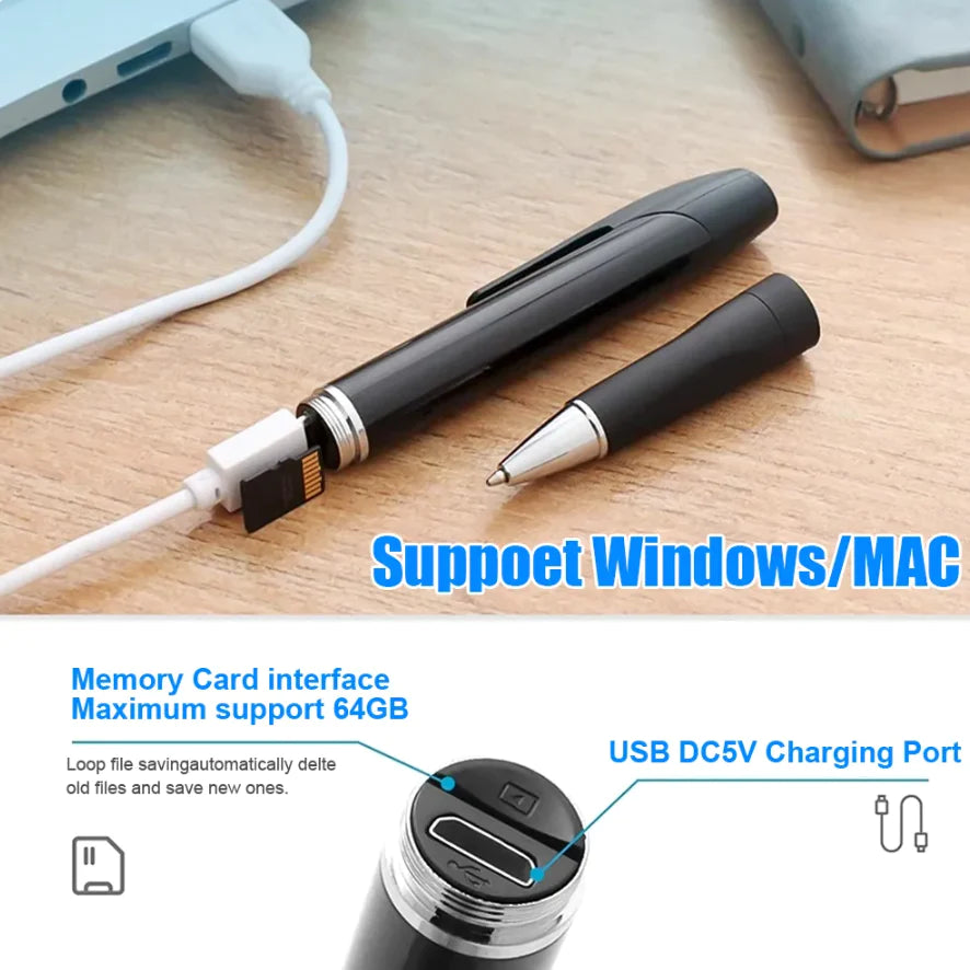 ✅ Ingebouwd 64GB Intern Geheugen: De verborgen camera pen heeft een ingebouwde 64GB kaart. De SpionPen™ kan direct gebruikt worden na ontvangst. Geen noodzaak om een andere geheugenkaart te kopen. Ondersteunt tot 128GB TF-kaart (inclusief 64GB kaart).