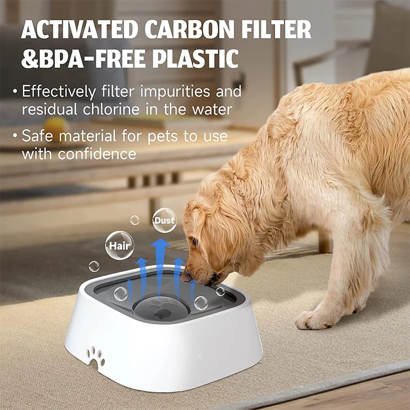 Wanneer de hond aan de drijvende schijf likt, wordt slechts een kleine hoeveelheid water vrijgegeven. Dit houdt de vacht van je huisdier droog en vertraagt zijn of haar drinktempo.